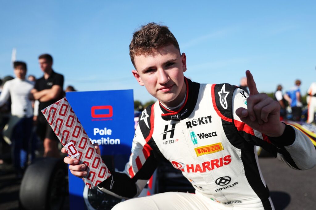 Championship leader Alex Dunne (Hitech GP) set a blistering pace during qualifying at Thruxton to notch up another two Omologato pole positions in the ROKiT F4 British Championship certified by FIA.