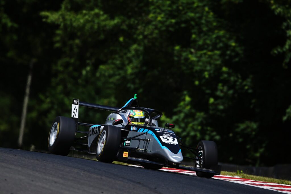 Eduardo Coseteng (Hitech) was ninth-fastest, the top ten runners completed by Noah Lisle (JHR), both in each individual session and overall. Adam Fitzgerald (Argenti) scored his first top-ten finish at Thruxton last time out, and was again on the fringes of a repeat showing in 11th.