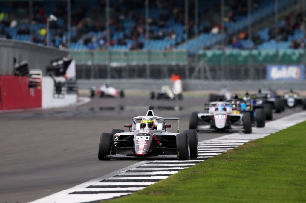 When those two collided at Brooklands disputing the runner-up spot, Carlin duo Ugo Ugochukwu and Louis Sharp pounced to seize second and third on the road, and they were handed a lifeline in the race when the safety car was called to clear up both Virtuosi Racing cars, team mates Edward Pearson and Michael Shin crashing out together at Brooklands.